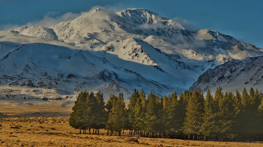 El volcán Domuyo es un estratovolcán (activo) que nace en la Cordillera del Viento, mide más de 4.700 metros y es conocido como «el techo de la patagonia» por tener en su cumbre la altura máxima de la región.