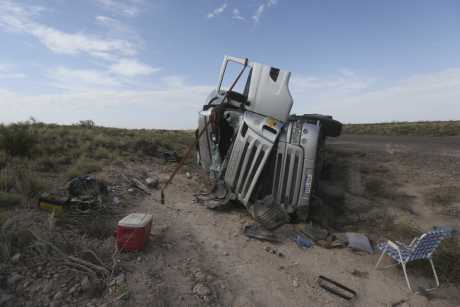 Se salvó de milagro tras volcar con su camión a unos 40 kilómetros al norte de Roca