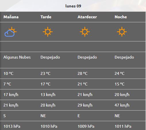 En Cipolletti, este lunes también será un día de temperaturas agradables, con máximas de 29 ºC. El cielo estará mayormente despejado, aunque con algo de nubosidad en algunos momentos.