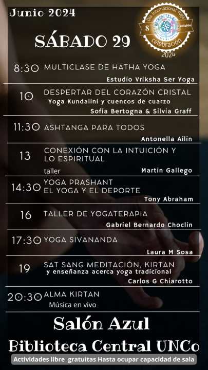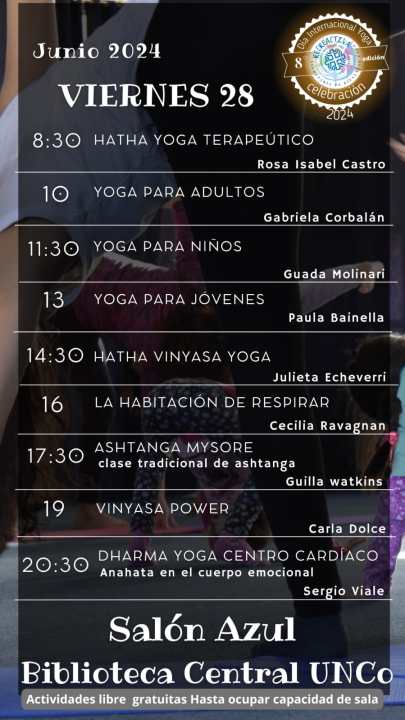 Este año las actividades se realizarán desde el 26 al 30 de junio y contarán con más de 50 clases para conocer las diferentes propuestas que se brindan en la región y que son aptas para todo tipo de personas hayan o no practicado Yoga previamente. Cada jornada se extenderá desde las 8 de la mañana a las 10 de la noche con una grilla heterogénea de actividades compuestas por práctica físicas, meditación, respiración, charlas, música, entre otras.