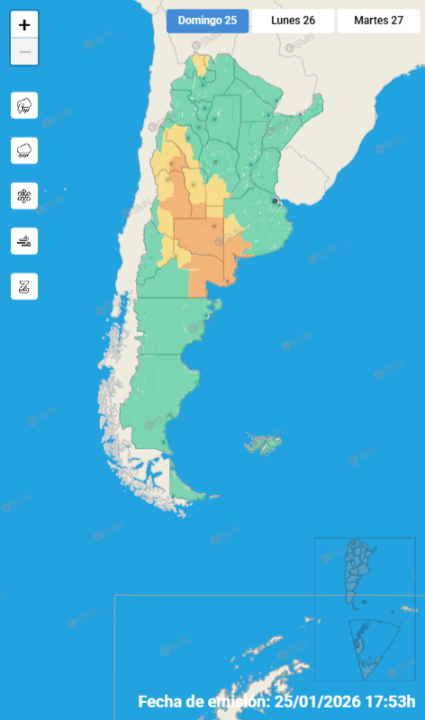 El Servicio Meteorológico Nacional (SMN) emitió alerta amarilla y hasta naranja en Neuquén y Río Negro para este domingo 25 de enero. El fenómeno meteorológico se aguarda para horas de la noche.