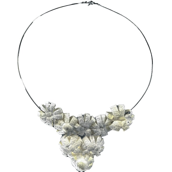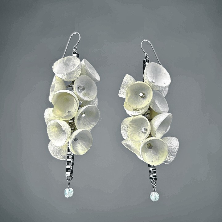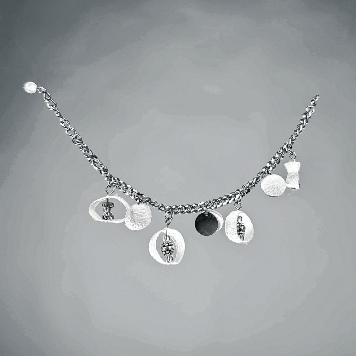 El intenso recorrido llevó a la artista a ser seleccionada para participar de la Milano Jewelry Week 2025, el evento internacional más relevante de la joyería contemporánea. Allí presentó piezas realizadas con capullos de seda —su sello distintivo— combinados con plata 925 y vidrio soplado.