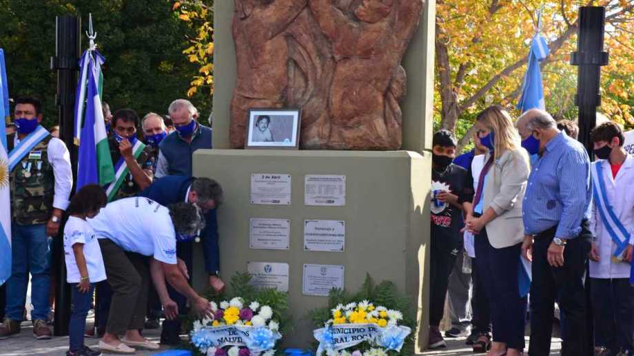 En el espacio memorial de Malvinas, ubicado sobre San Juan y Artigas, se hicieron presentes autoridades municipales, concejales, fuerzas de seguridad provinciales y federales, y el grupo de Veteranos de Guerra de General Roca.