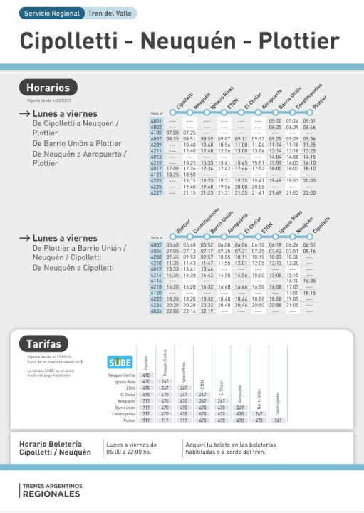 Según indicaron desde la empresa, el servicio que va de Neuquén a Plottier se encuentra «funcionando normal» este jueves.