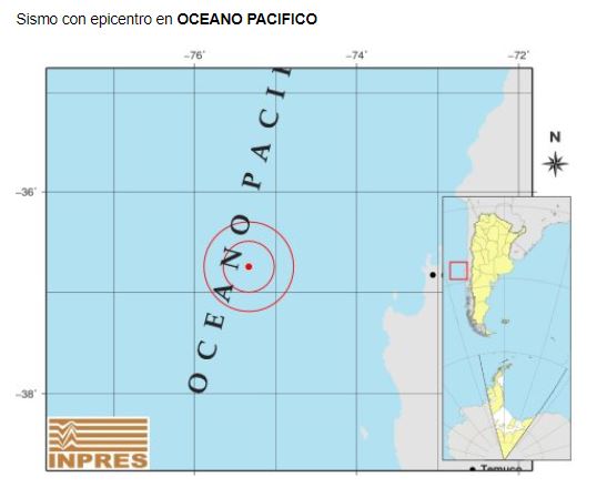 Según el Instituto Nacional de Prevención Sísmica (Inpres), el sismo ocurrió a las 22.15 (hora argentina)m sobre el océano Pacífico y a 10 kilómetros de profundidad. Tuvo una magnitud de 5.9.