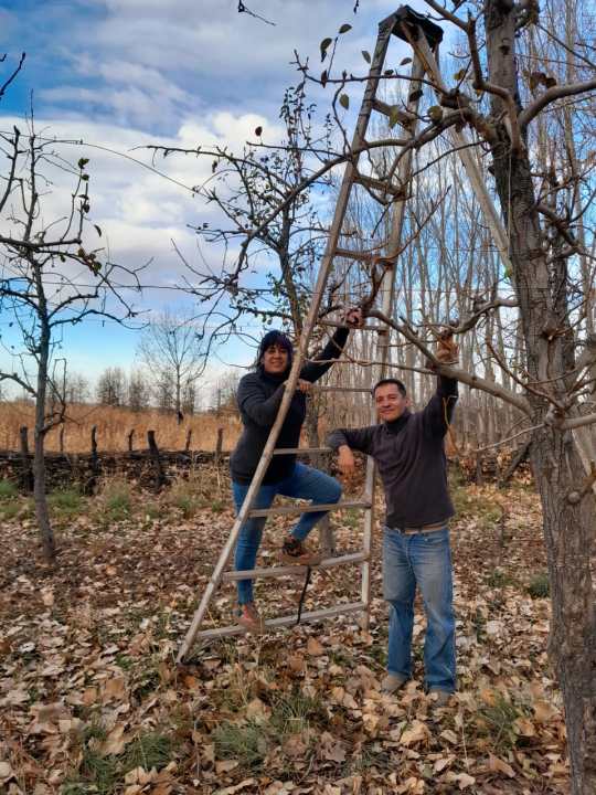 Hace unos años viven en una chacra con una superficie que va más allá de las métricas de organización legal del espacio, porque se sienten afortunados de ser parte de una comunidad agroecológica en la zona rural de Allen. Los enamoró las alamedas, los perales, el agua y el aspecto salvaje del sitio. Lo que para muchos podría entenderse como un estado de abandono, ellos lo percibieron como una superficie libre de agrotóxicos, es decir un espacio ideal para comenzar a cumplir su objetivo de generar alimentos sanos para el autoconsumo y la comunidad.