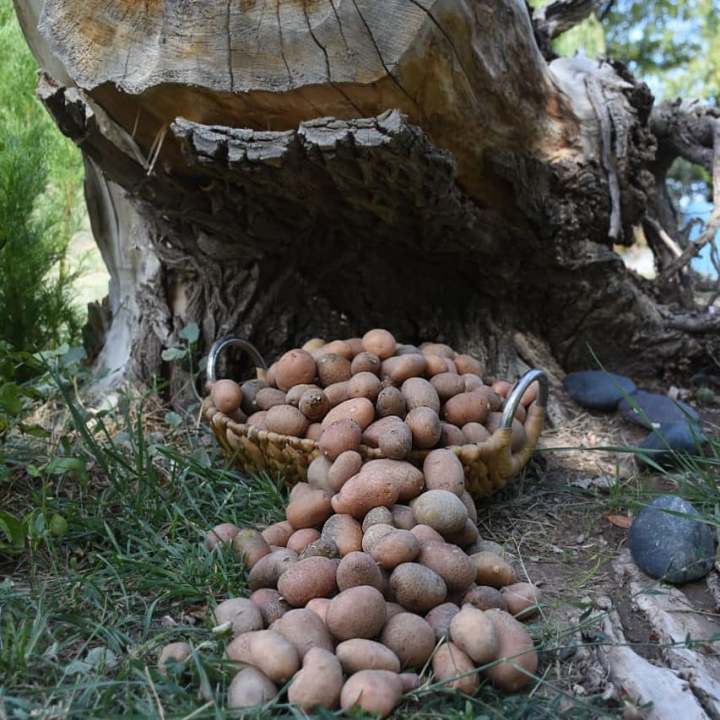 Con la ayuda eventual de la gente de la zona, en la chacra producen futas y verduras biodinámicas, también tienen huevos de gallinas ponedoras y de codornices, de las colmenas cosechan una miel impregnada por las plantas aromáticas y las flores que hay entre frutal y frutal. Las semillas que producen ya tienen las características de esa tierra entre la barda y el río, entre el viento y las abejas, y de las flores, que como todas las flores, tienen los nombres del amor.