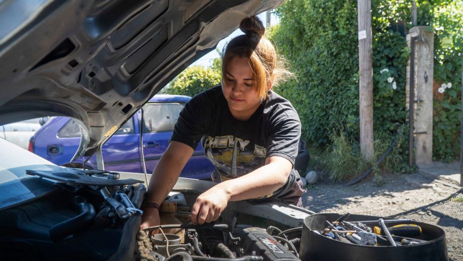 Con tan solo 20 años, Victoria Ancapan egresó como auxiliar de electricista de automotores de la Escuela de Oficios 2 de Bariloche. Su pasión por los fierros, admite, la heredó de su padre que corre rally desde hace ya algunos años. Siendo muy pequeña, lo acompañaba a los talleres mecánicos, observaba de lejos, lo alentaba en las competencias automovilísticas y de a poco, supo qué camino quería tomar. Hoy no se conforma con el logro reciente: su próximo paso será emprender una formación en mecánica.