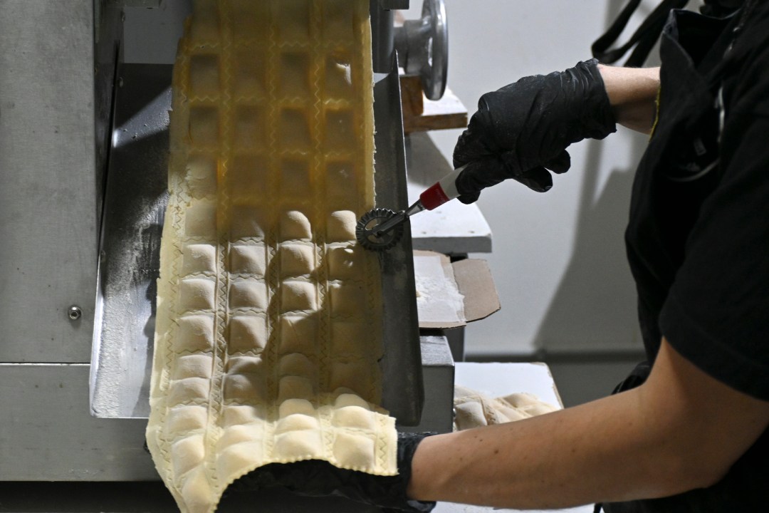 Puso como ejemplo los ravioles de cordero: «Compramos la pata de cordero y la hacemos a la cacerola con verduras. Tiene una cocción de 3 o 4 horas. Eso lo procesamos y lo hacemos parte del relleno del sorrentino. Todo eso se hace manual. Igual que la trucha. Nuestras pastas no tienen conservantes. Es super casero«.