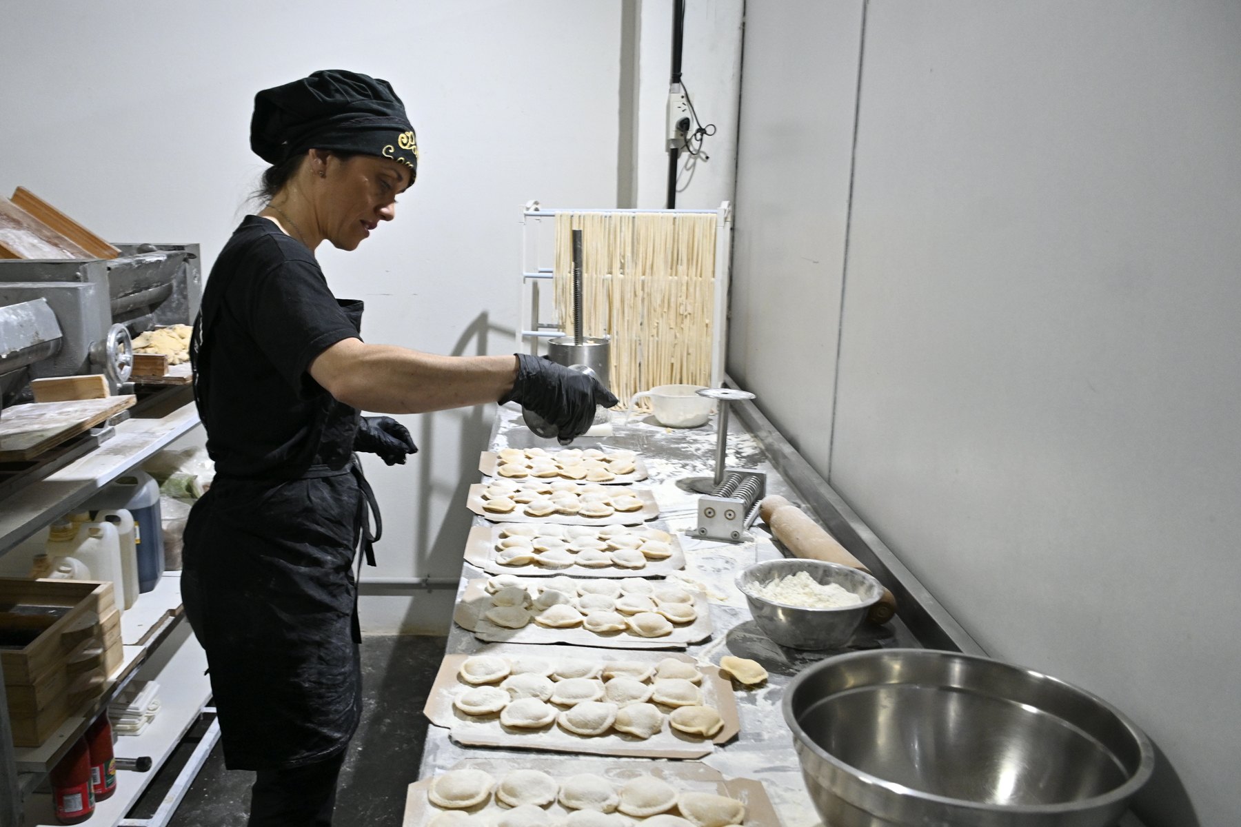 Puso como ejemplo los ravioles de cordero: «Compramos la pata de cordero y la hacemos a la cacerola con verduras. Tiene una cocción de 3 o 4 horas. Eso lo procesamos y lo hacemos parte del relleno del sorrentino. Todo eso se hace manual. Igual que la trucha. Nuestras pastas no tienen conservantes. Es super casero«.