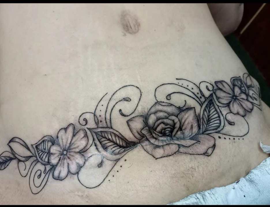 Majo tomó la decisión de tapar una cicatriz que tiene en la parte baja de su abdomen. «Hace años me realicé una cirugía bariátrica y adelgacé muchos kilos y hace dos años me realizaron una operación de remoción de piel. Me quedó una cicatriz profunda que no me gustaba. Era un inconveniente en verano y tenía resquemor en otras cuestiones de la vida. Me molestaba verla y tuve la idea de hacerme un tatuaje. Me contacté con Romina que me acompañó y fue muy profesional. Fue todo muy cuidado.