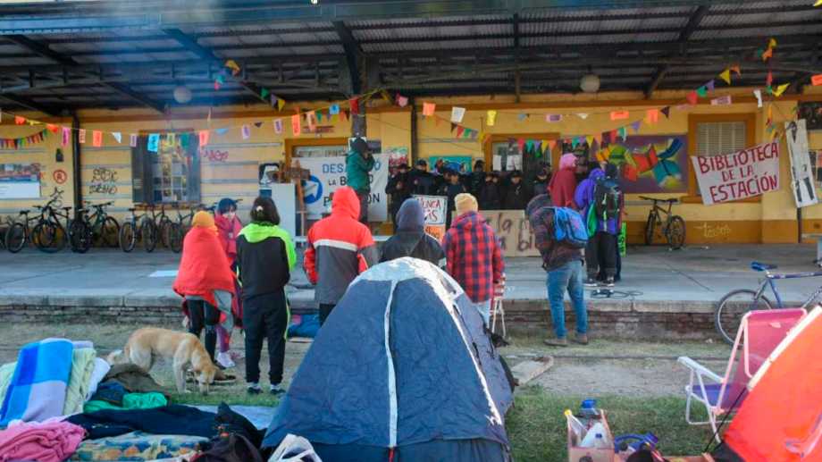 Otro momento de tensión se vivió esta mañana en las inmediaciones de la estación de ferrocarril de Roca por el conflicto entre integrantes de la biblioteca de la Estación y el municipio de la ciudad, donde los manifestantes denunciaron el vaciamiento del lugar. Hoy, una decena de uniformados se acercaron nuevamente por orden de la fiscal Belén Calarco, para identificar a las personas involucradas en la «usurpación».