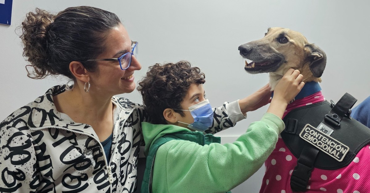 Durante un tiempo participaron Andy y Naomi, dos perros rescatados que se jubilaron el año pasado. Pero ahora, la estrella de esta actividad es Burlete, un galgo que también fue rescatado de la calle, se recuperó y encontró un nuevo sentido para su vida: recorrer los pasillos del centro de salud llevando alegría, calma y ternura a los pacientes pediátricos.