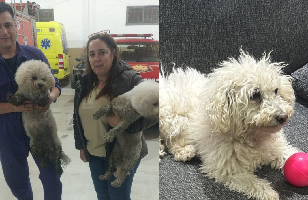 Según explicaron desde Bomberos, los perros se encontraba "asustados y con principio de hipotermia". Luego de varias horas, se reencontraron con sus dueños.