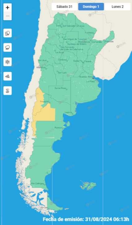 En torno a fines de agosto y principios de septiembre se suele producir la denominada Tormenta de Santa Rosa. Para este sábado rige un alerta por lluvias en Buenos Aires, y el domingo por viento en gran parte de Neuquén y Río Negro. Además, en la zona cordillerana se esperan nevadas.