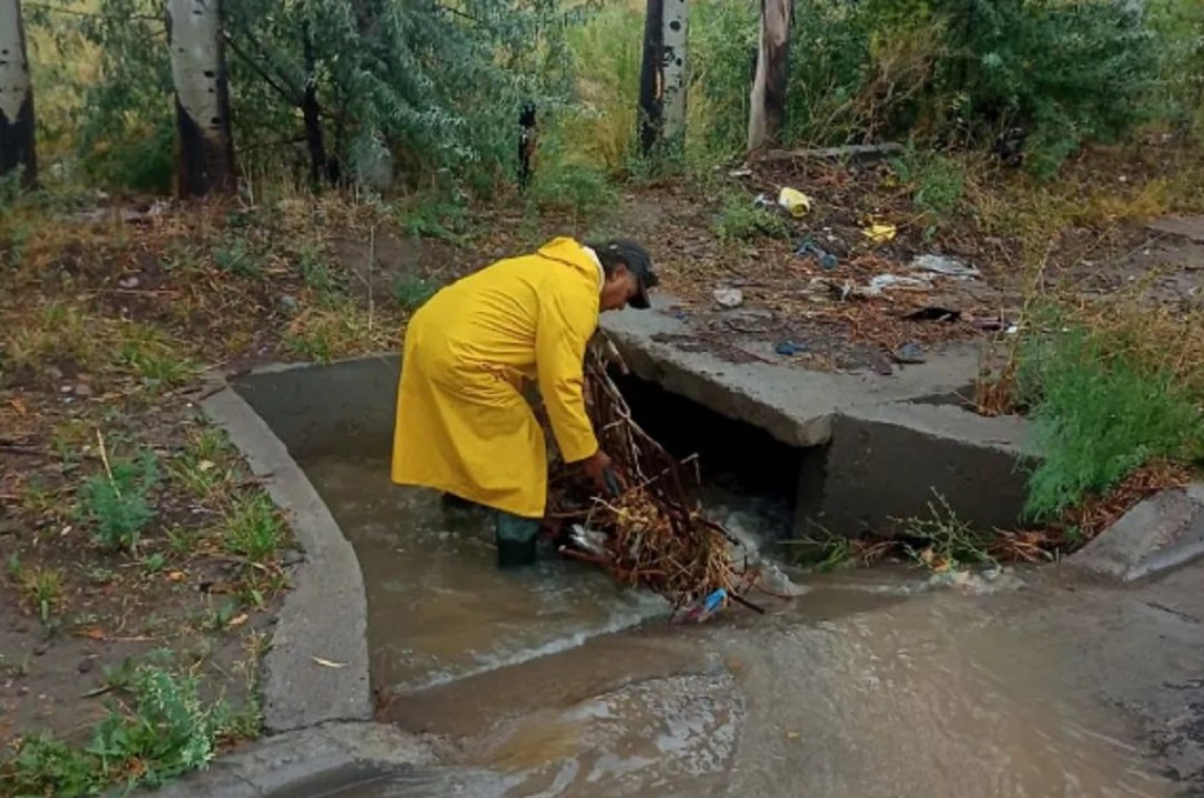 Según se informó, las tareas se centraron en agilizar el desagüe y garantizar el escurrimiento del agua de las calles que, desde la mañana, se vieron anegadas por la abundante precipitación en pocos minutos.