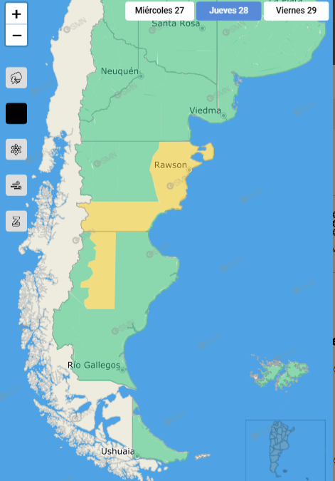 Por el momento Neuquén y Río Negro no forman parte del alerta, pero si quedaron involucradas otras provincias de la Patagonia sur como Santa Cruz y Chubut. En el caso de estas dos provincias, el alerta será por lluvias persistentes: «Se esperan valores de precipitación acumulada entre 20 y 35 mm, que pueden ser superados de manera puntual», y explicaron que los horarios más complicados serán durante la mañana.