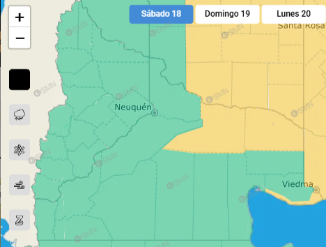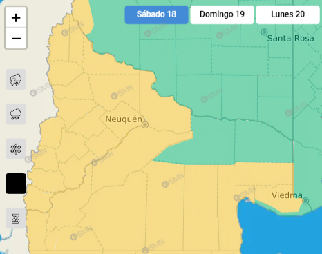 El Servicio Meteorológico Nacional (SMN) lanzó un combo de alertas, amarilla y naranja, que tendrá impacto en las provincias de Neuquén y Río Negro este 18 de abril.