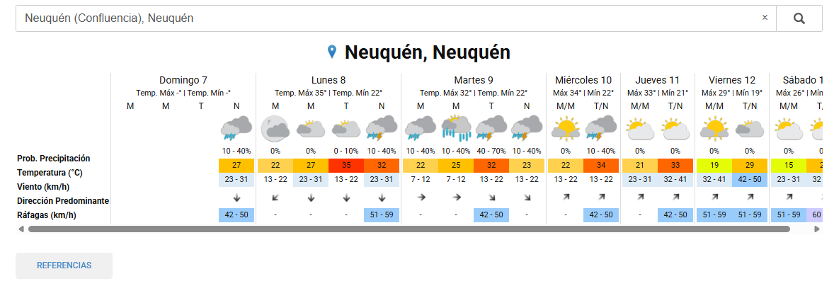 Según indica el SMN,el lunes las temperaturas oscilarán entre los 19°C y los 35°C en el Alto Valle. Por la noche, las temperaturas también se mantendrán elevadas, manteniendo los 32°C.