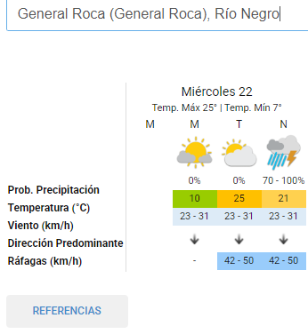 En ciudades como Roca se espera que la lluvia se instale durante la noche. Además se le sumará el viento durante la tarde con ráfagas de hasta 50 km/h.