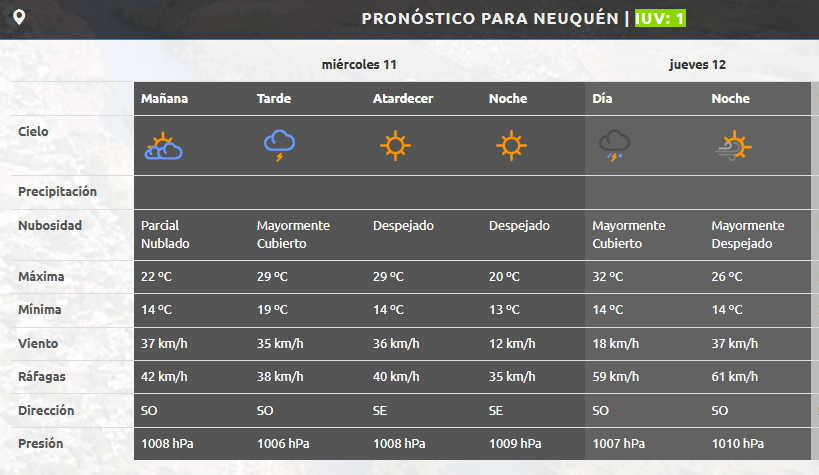 Te contamos el detalle del pronostico para la zona del Alto Valle según la AIC. Así estará la jornada en Neuquén, Cipolletti y Roca.