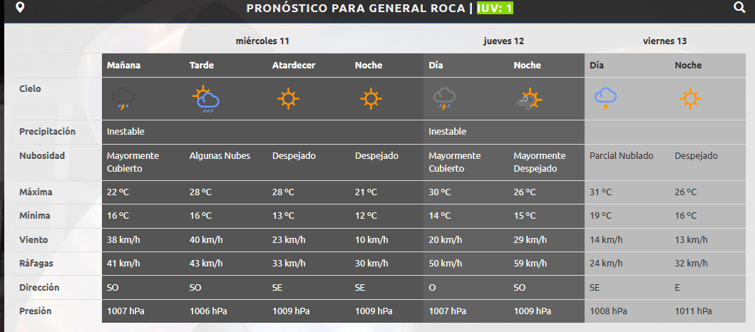 El pronóstico para este miércoles en Cipolletti: ¿llega la lluvia y sigue el viento?