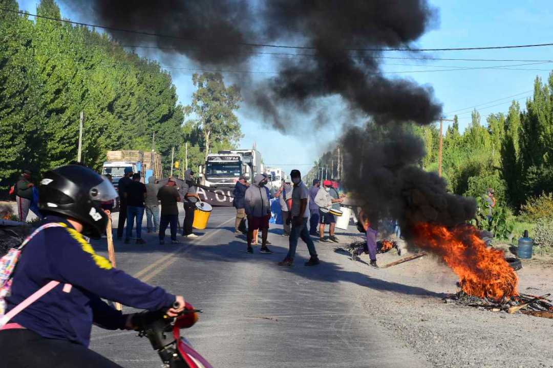 Las dos rutas que unen la ciudad con otros puntos del Alto Valle están bloqueadas y la interrupción es total. En la Ruta chica, es el sexto día de corte.