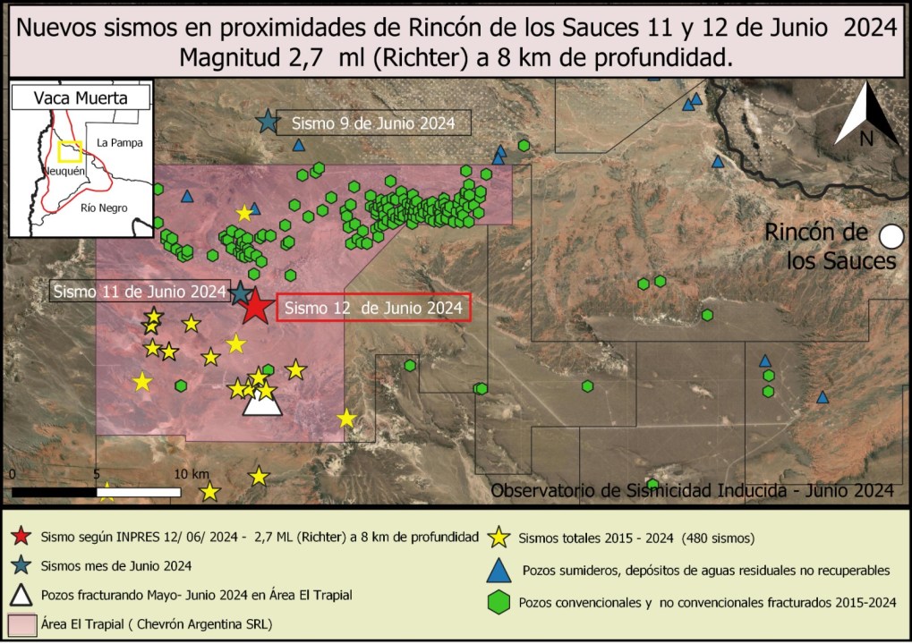 Con estos tres sismos ya suman 33 los fenómenos ocurridos en lo que va del año en Neuquén. De ese total, solo 10 fueron localizados en áreas dónde naturalmente se producen los epicentros —cordillera de los Andes y precordillera— y los restantes 23 «están asociados a las extracción de hidrocarburos por la técnica del fracturamiento hidráulico«, detallan desde Observatorio.