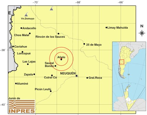 - Rincón de los Sauces: 5.44 de este viernes, 6 kilómetros de profundidad, 2.8 en escala de Richter.