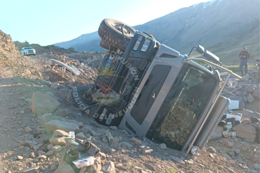 Según relataron, el accidente ocurrió debido al terreno inestable, que cedió bajo el peso del vehículo, causando el vuelco. Se les sugirió trasladarse a Varvarco mientras se coordinaba el rescate del camión.
