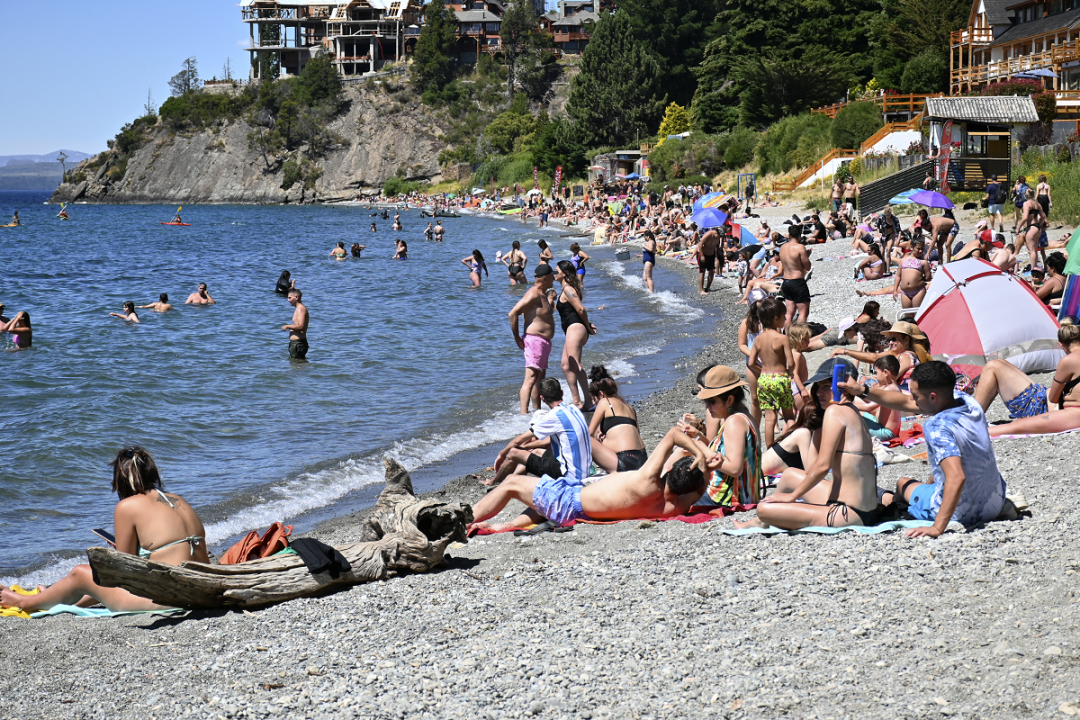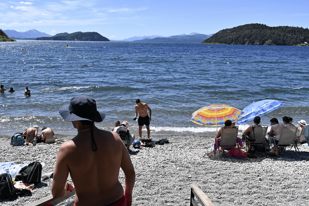 Turistas y residentes buscaron alivio por las altas temperaturas en el lago Nahuel Huapi de Bariloche