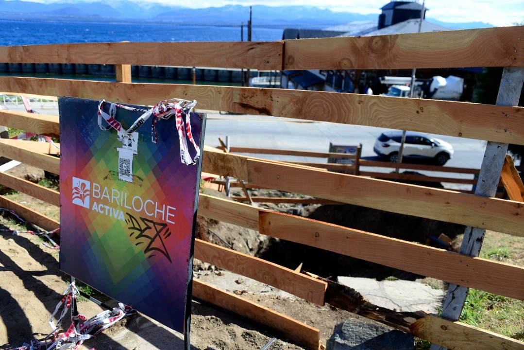 Un sector de la plazoleta que rodea al edificio histórico, detrás de la biblioteca Sarmiento, presenta ahora un enorme pozo que fue creciendo en las últimas semanas hasta sus dimensiones actuales. Las escaleras que descendían a la costanera ya no están, la vereda fue cortada y vallada, y el conducto de hormigón que se encontraba debajo quedó a la vista, con huecos y una fisura lateral que deriva el fuerte caudal por un costado.