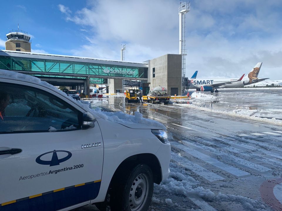Fuentes aeroportuarias confirmaron a RÍO NEGRO que entre las 7 y las 7.30 de hoy fue muy grande la acumulación de nieve en la plataforma donde estacionan los aviones. No así en la pista de aterrizaje, que estuvo operativa por las acciones preventivas.