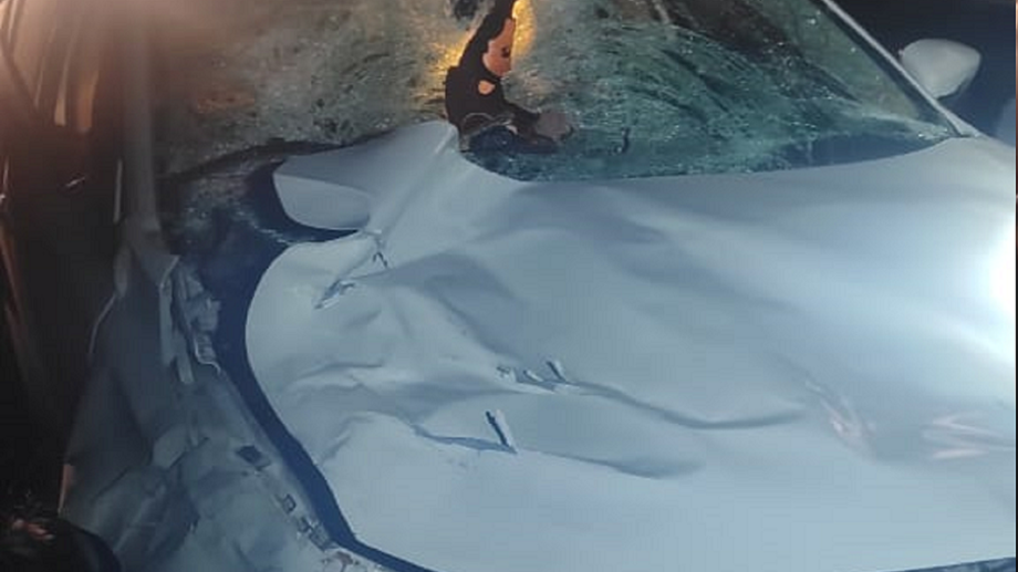 Debido a la poca iluminación y a que el encuentro fue sorpresivo, el conductor no logró esquivar al animal y lo chocó. El impacto fue tan fuerte que el auto quedó completamente dañado sobre su lateral derecho.