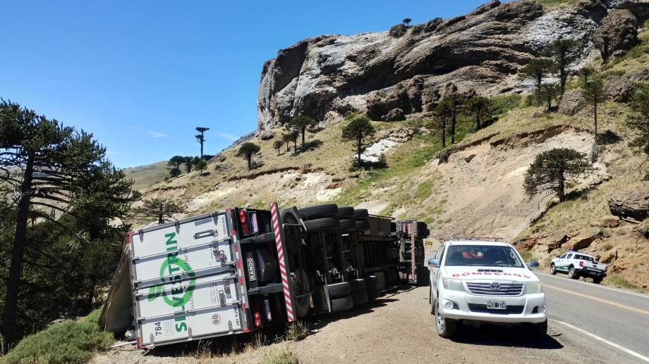 Un impactante vuelco ocurrió esta tarde sobre la Ruta 242, cerca del paso Pino Hachado. El siniestro fue protagonizado por un camión brasileño que transportaba salmón y su conductor debió ser trasladado al hospital tras el incidente. El vehículo quedó bajo custodia hasta que lo vengan a retirar.