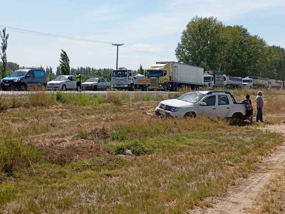 Una camioneta Renault Oroch terminó fuera de la traza y se desplegó un operativo de control sobre la Ruta 22. (Foto: gentilza AN Allen)