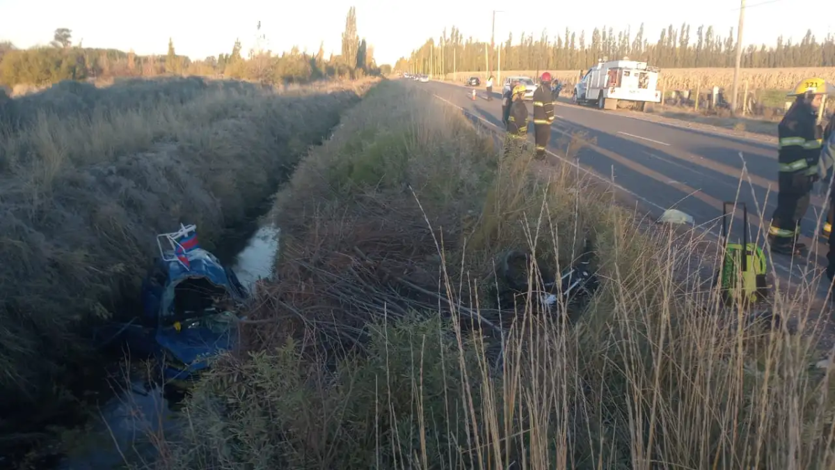Tras el choque, el auto cayó a un canal al costado de la ruta. Las tres personas involucradas fueron trasladadas al hospital Francisco López Lima de Roca.