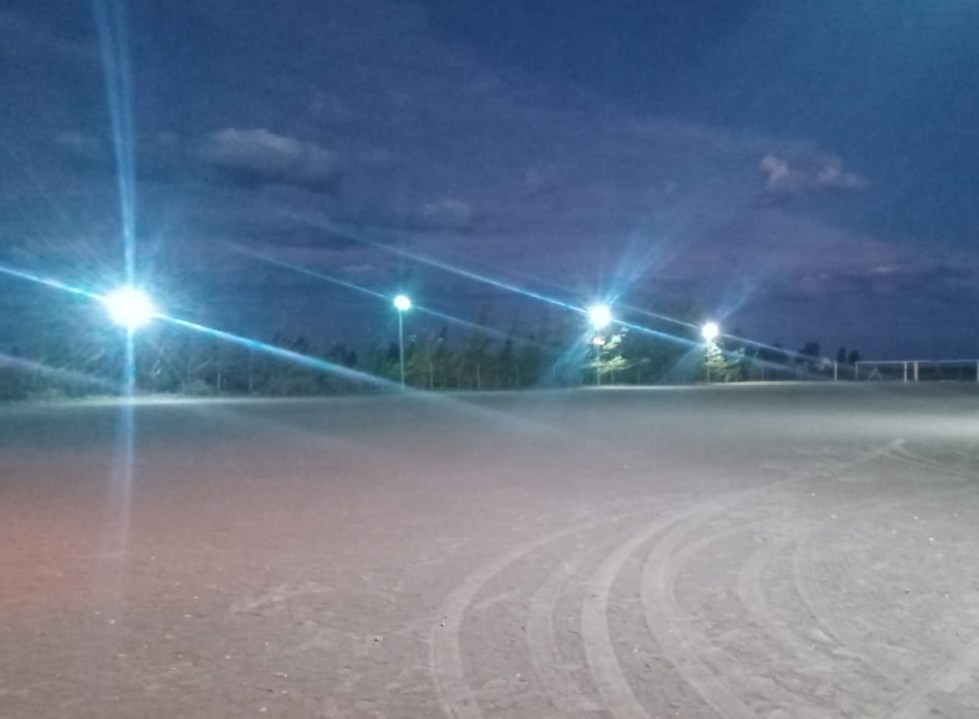 Se llevaron cuatro reflectores led y más de 100 metros de cable que iluminaba las canchas reglamentarias, una de ellas para jugar la Liga Rionegrina y la otra de entrenamiento de todas las categorías infantiles.