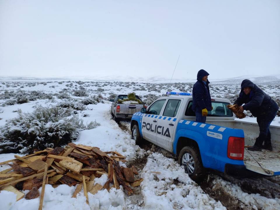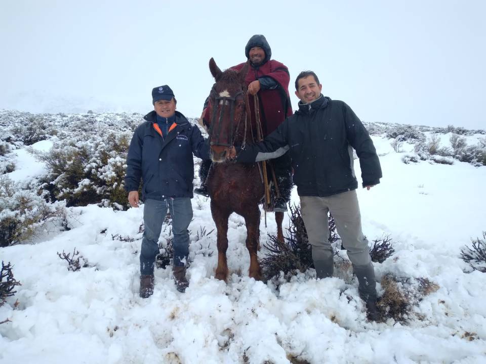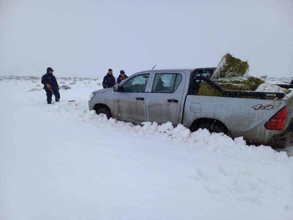 Dos camionetas partieron el miércoles y, a fuerza de pala, lograron abrirse camino hasta 300 metros antes del puesto. Llegaron el mismo día, cargados de víveres, leña y forrajes, que fueron trasladados a pie por el tramo que no pudo completar con las camionetas.