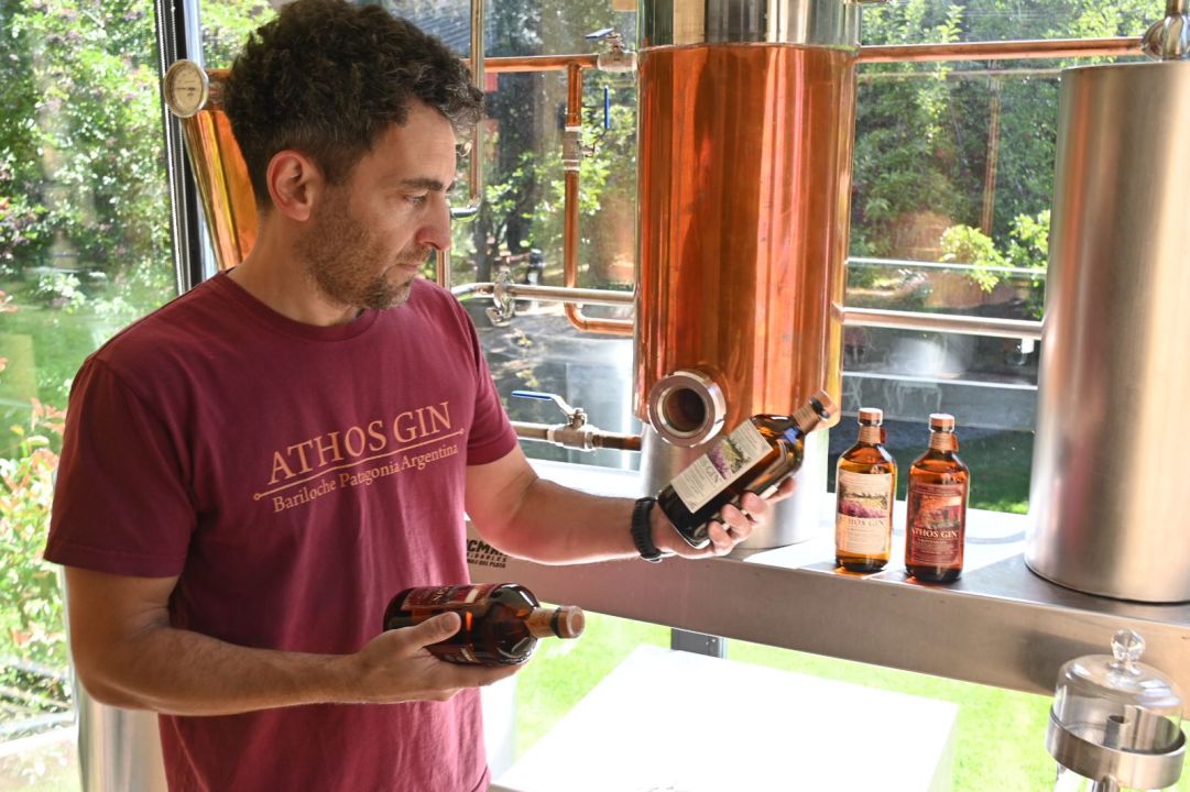 En la microdestilería ubicada en el kilómetro 2046 de la ruta nacional 40, en la rotonda que conduce al aeropuerto de Bariloche, los tres socios arrancaron con 14 botellas “por destilación” y hoy elaboran alrededor de 400 por destilación. Se fabrican unas 1200 botellas por mes. Philbert reconoció que el público principal es el residente que ya conoce el producto. “Cuando llega algún familiar de visita, les dan a probar Athos. Pero además, tenemos mucho público extranjero porque, como estamos cerca del aeropuerto, pasan a conocer”, dijo.