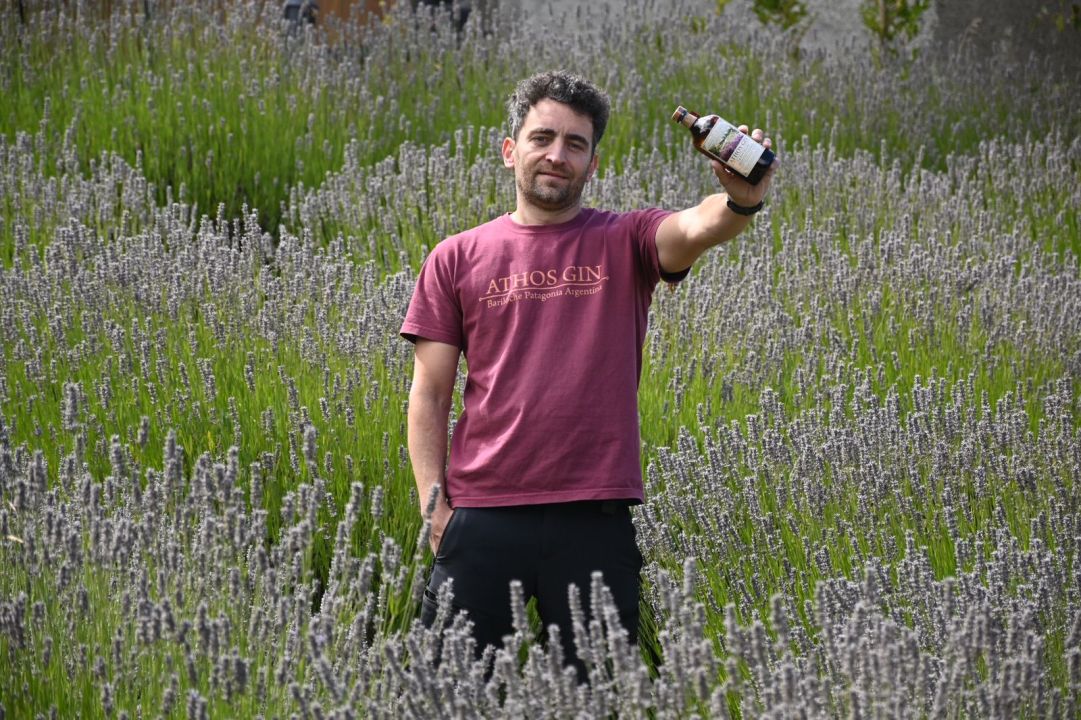 La primera creación fue Athos 1 (elegido como el mejor gin contemporáneo argentino en Londres en 2023), con lavandas cosechadas en la chacra, cítricos, pimientas. Representa el verano patagónico.