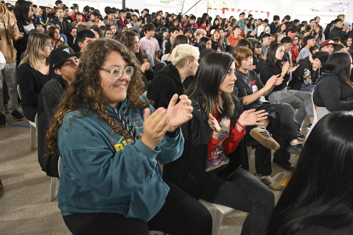 La inauguración fue acompañada por una gran cantidad de alumnos del colegio que celebraron la flamante obra, pero también hubo reclamos, no solo los de CTA que interceptó en la puerta ala gobernadora.