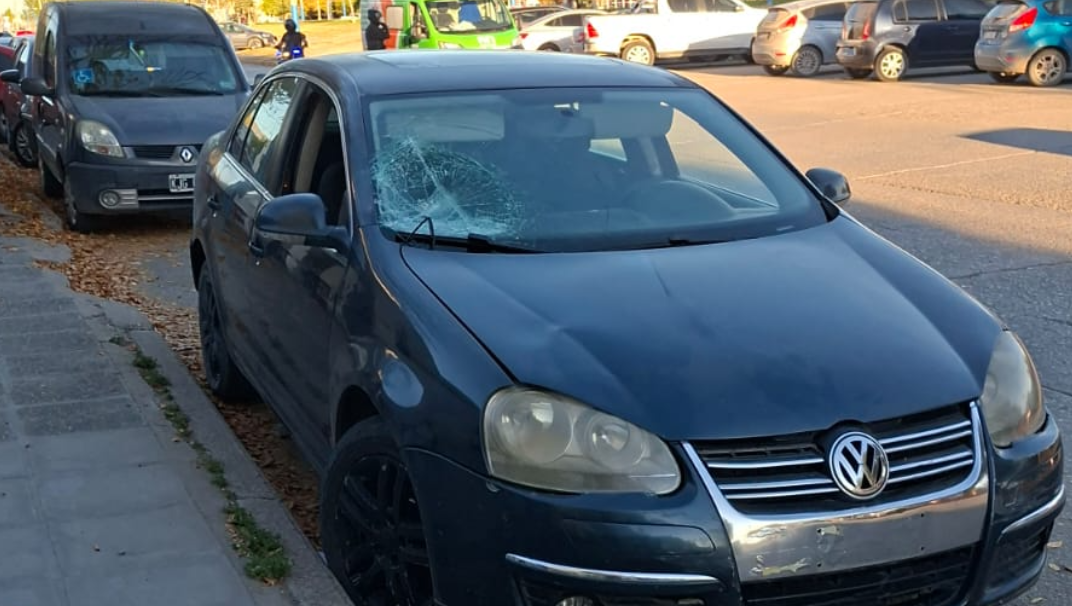 El vehículo involucrado, un Volkswagen Vento, terminó con una visible marca de impacto en el parabrisas producto de la violencia del golpe.