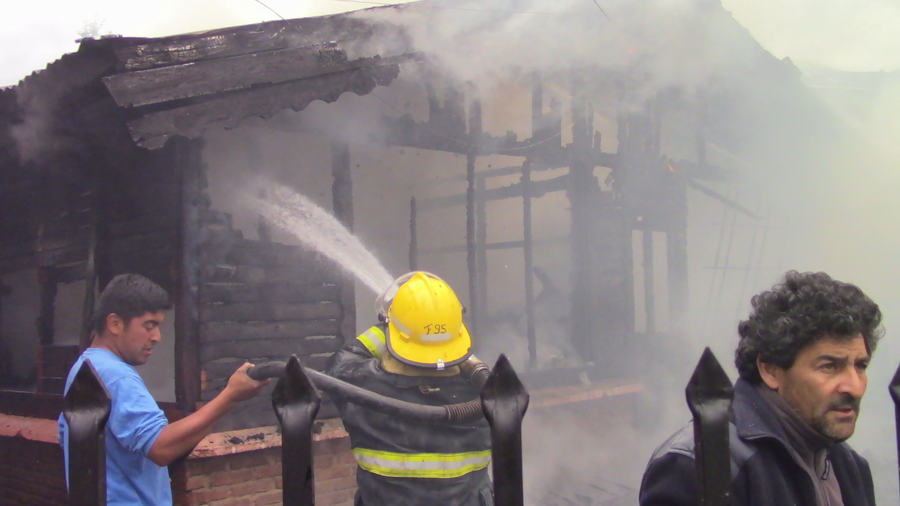 María Montero y sus dos hijos lo perdieron todo este mediodía, luego de que un incendio destruyó por completo su vivienda ubicada sobre la calle Padre Guillelmo y Cacique Linares, en el barrio Irigoyen de El Bolsón.