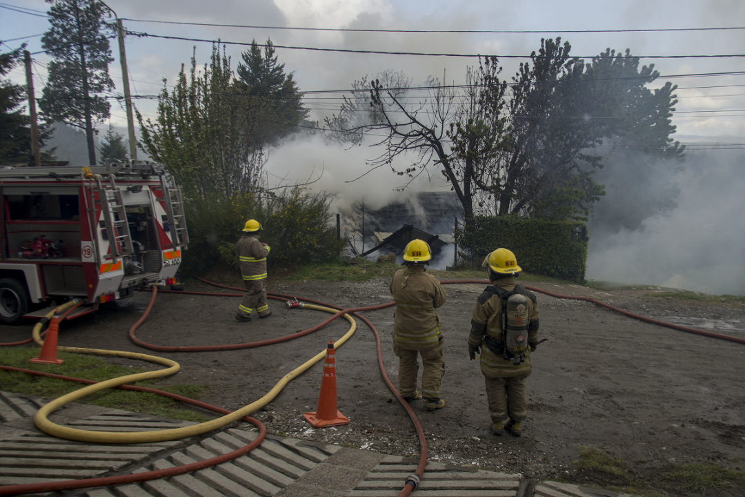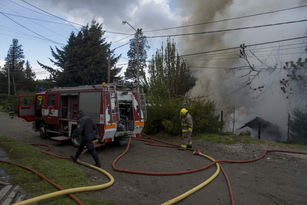 Un incendio, que se originó por causas que se tratan de establecer, destruyó dos viviendas. El fuego comenzó alrededor de las 16 de este sábado en un domicilio que estaba sin moradores, ubicada en un lote situado en la calle Suiza y Austria de Bariloche.