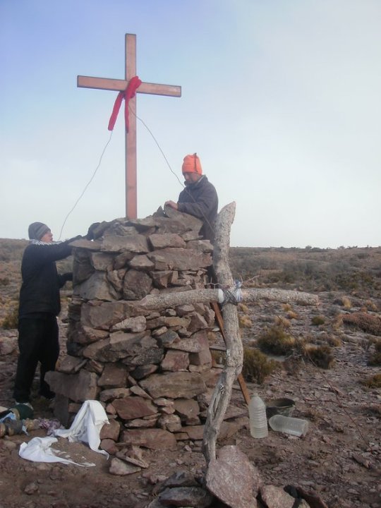 Brenda Martin, Denis Silvestre, Joaquín Navarrete y la pequeña Sele Navarrete, fueron los que encararon la delicada tarea. Ricardo Tripailao, junto a otros dos padres del grupo, recolectaron la piedra laja y levantaron la base de la cruz. Ésta fue donada por la parroquia, bendecida por Modarelli y permanece junto al punto donde cayó y explotó el avión. Una capilla construida por el municipio, los rosarios y una placa con los nombres de los fallecidos completan el homenaje.
