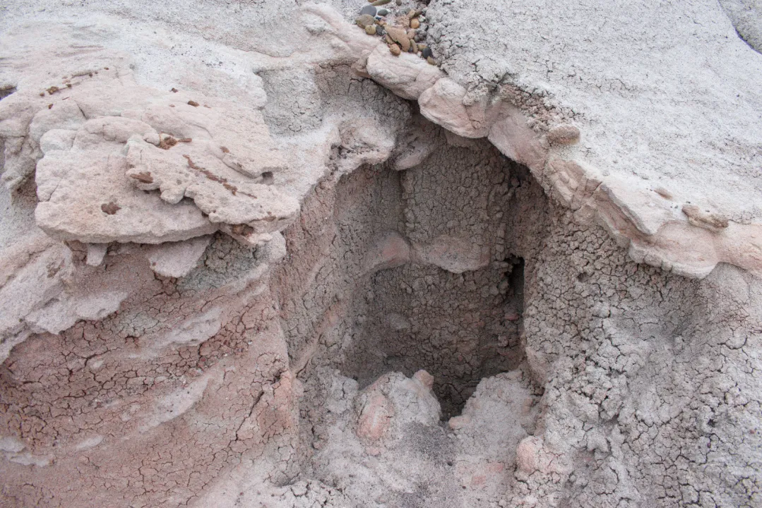 «Muchas veces, como la roca es tan blanda termina colapsando por su propio peso. Por eso, en algunos casos, uno puede ver la abertura rellena con material. Terminan colapsándose por su propio peso. A veces, hay algo de vegetación que tapa la abertura», aseguró.