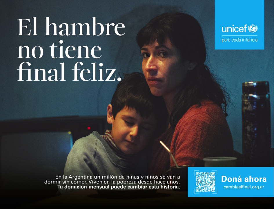 Con la colaboración de la agencia creativa VML, UNICEF convoca a la sociedad a sumarse con una donación mensual bajo el hashtag #CambiaElFinal, para apoyar los programas que lleva adelante en el país. Estos programas abarcan desde el apoyo nutricional a personas en situación de vulnerabilidad hasta el monitoreo del presupuesto nacional destinado a la infancia.