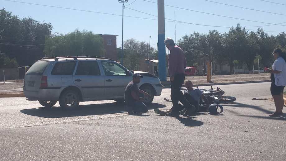 Un motociclista fue hospitalizado esta tarde tras protagonizar un choque con un auto al norte del Canal Grande, en Roca. El accidente ocurrió pasadas las 15 en las calles Toledo y Palacios.