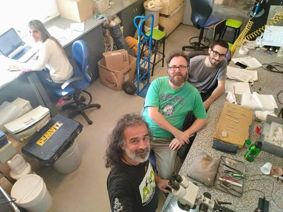 La extracción del fósil fue liderada por la técnica Akiko Shinya y la preparación del material fósil en laboratorio fue obra de los técnicos Jonatan Kaluza y Leonardo Javier Pazo, de la Fundación Azara.